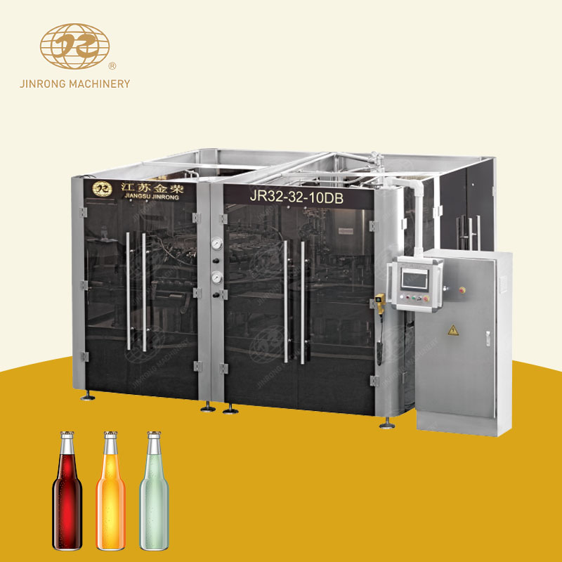 三合一含汽飲料灌裝機集清洗、灌裝、旋蓋于一體的灌裝設備,成套飲料生產線適合汽水、可樂、蘇打水、氣泡水等。玻璃瓶含汽飲料灌裝機組內部一次完成洗瓶、灌裝、封蓋三道工序,瓶子磨損小、傳動準確平穩、瓶型更換便捷。