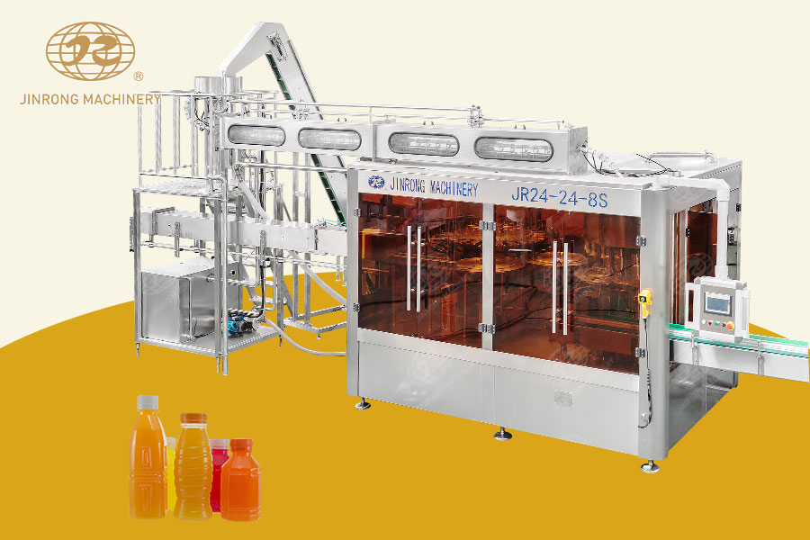 玻璃瓶果汁灌裝設備清洗部分為回轉式吹瓶機,主要用于水灌裝、飲料灌裝的沖洗之用。采用全新的不銹鋼夾鉗,結構簡單,調整方便;與瓶口接觸面積少,有效避免對瓶口的二次污染。