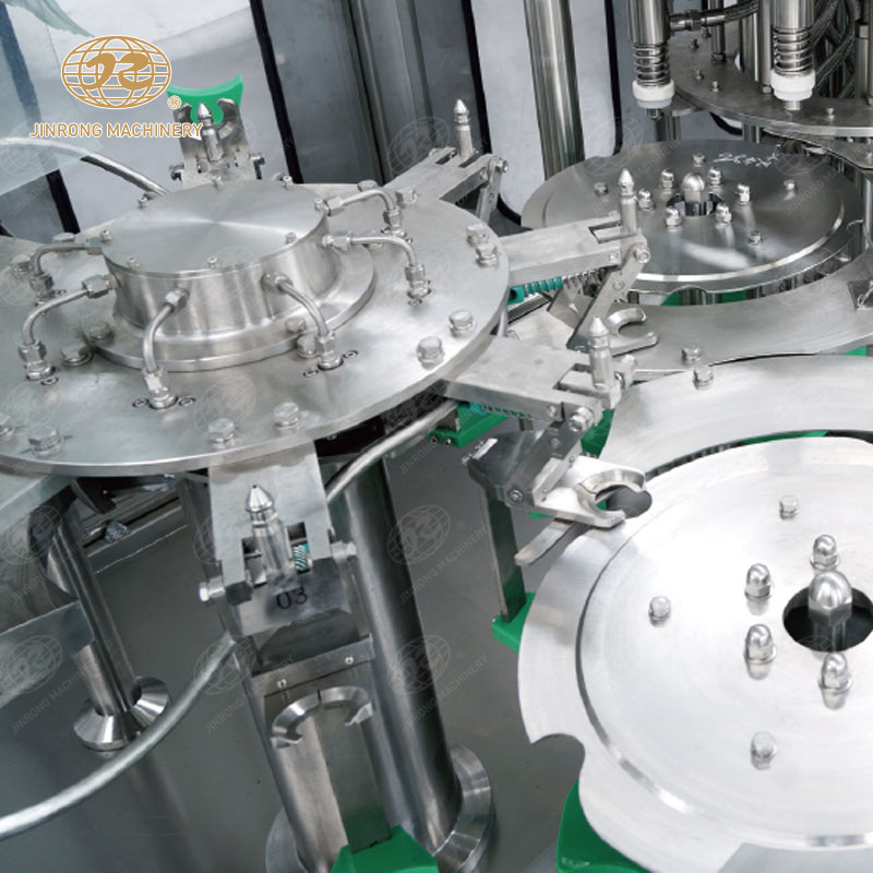 1.由理蓋器整理好的蓋子擰到已灌裝好產(chǎn)品的瓶子上,并由輸送鏈送至后道工序。